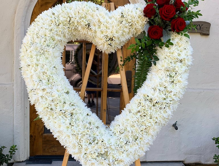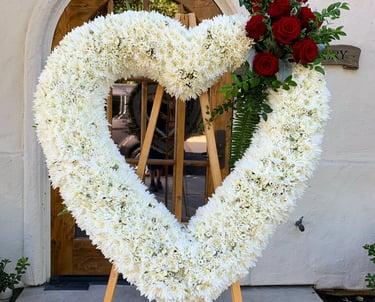 Heart of flowers in a base for a funeral